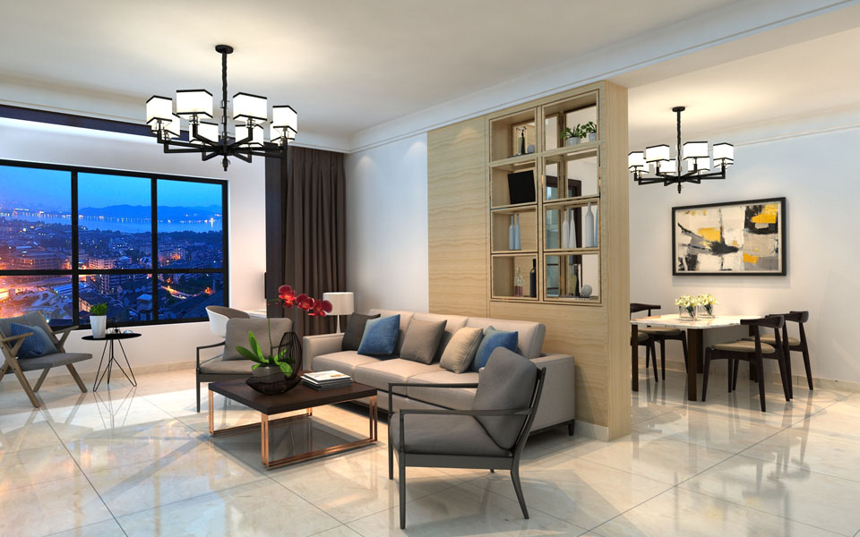 【華新山水居】美式躍層客餐廳效果圖